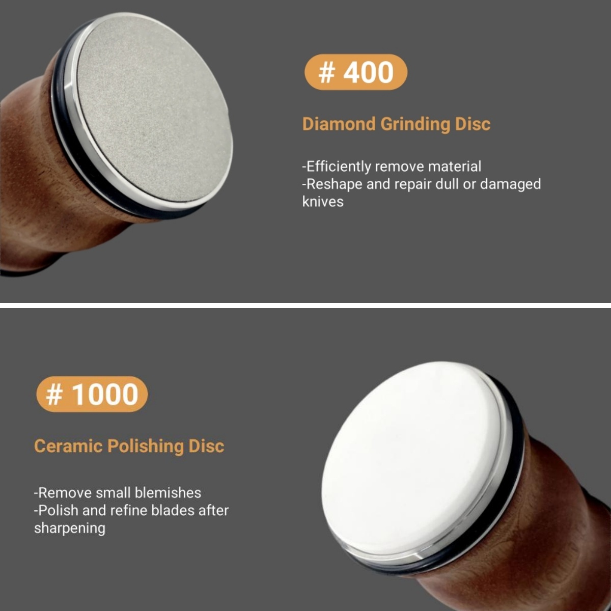 Coarse & Fine ceramic rollers handle all sharpening stages quickly