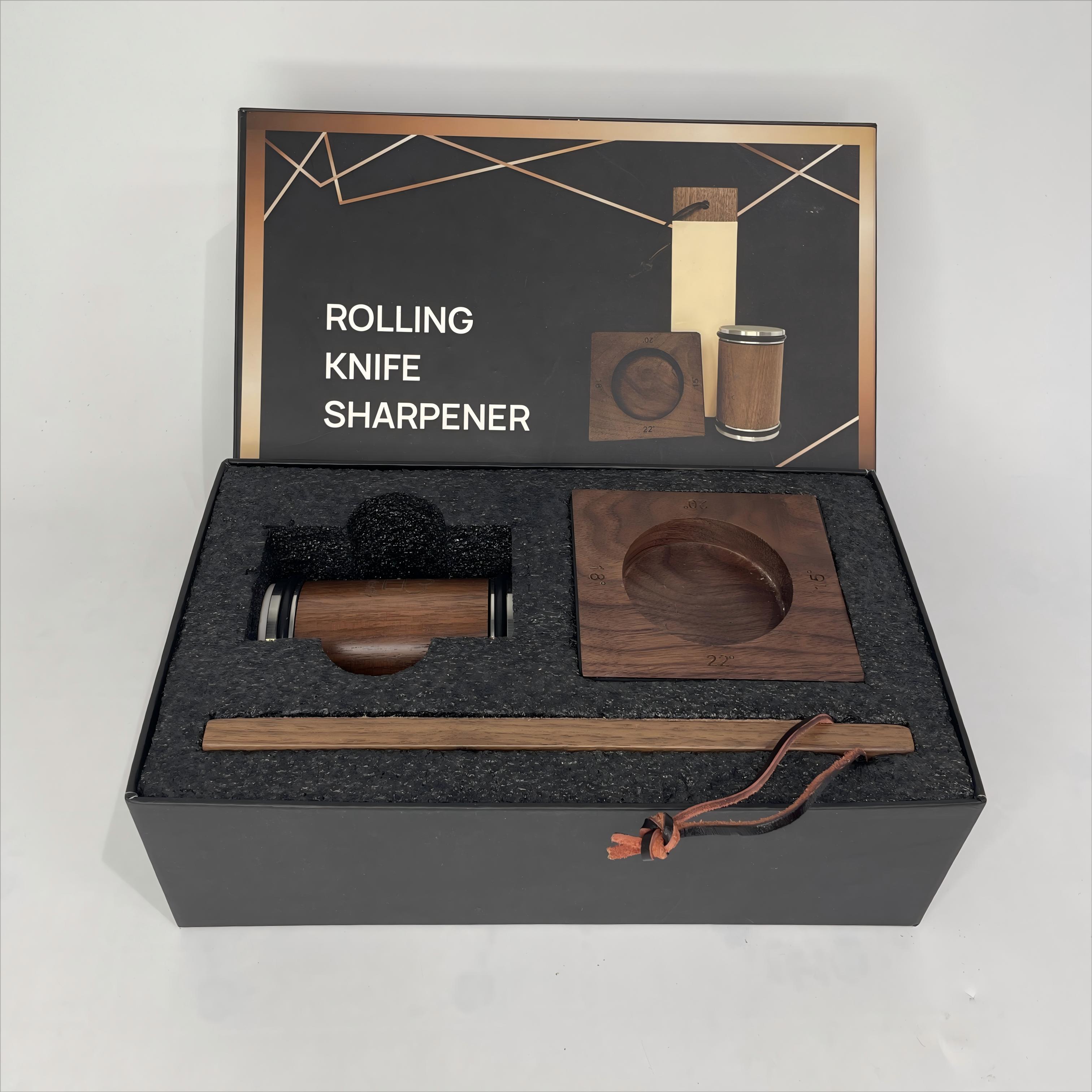 Professional Universal Wooden Rolling Knife Sharpener with Adjustable Base Fits ALL Knives Replaceable Whetstone & Anti-slip Pad